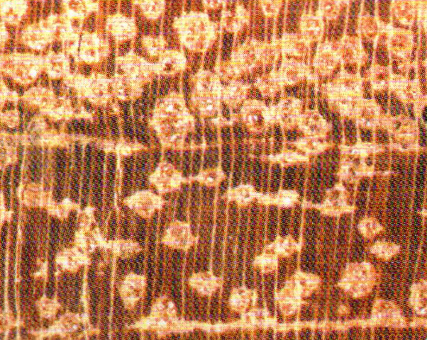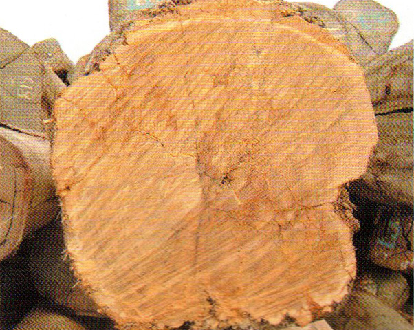 心邊材區(qū)別明顯。心材淺黃褐色,久則轉(zhuǎn)為巧克力褐色。邊材窄,金黃色。生長(zhǎng)輪略可見。