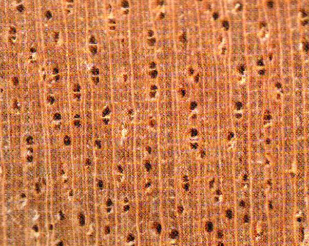 光澤弱;新鮮材具難聞氣味。交錯(cuò)紋理;結(jié)構(gòu)甚細(xì)、均勻;重量、強(qiáng)度中:干縮大。鋸、刨、旋切等加工容易、切面光滑,但因含硅石.易鈍鋸:油漆、膠黏、釘釘性能良好:抗酸性強(qiáng)。不耐腐。干燥快,略有降等。氣干密度約0.56 g/cm3。