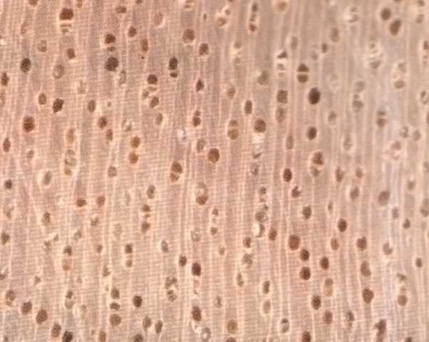 心邊材區(qū)別不明顯,心材粉紅褐色至紅褐色。邊材色稍淺、生長(zhǎng)輪不明顯。